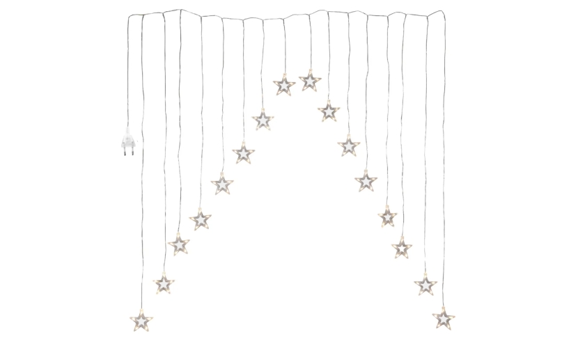 Λαμπάκια LED τύπου κουρτίνα με διακοσμητικά αστέρια, ιδανικά για την χριστουγεννιάτικη διακόσμηση σε οποιονδήποτε εσωτερικό χώρο.Διαθέτουν πλήκτρο για την εναλλαγή της λειτουργίας του φωτισμού.