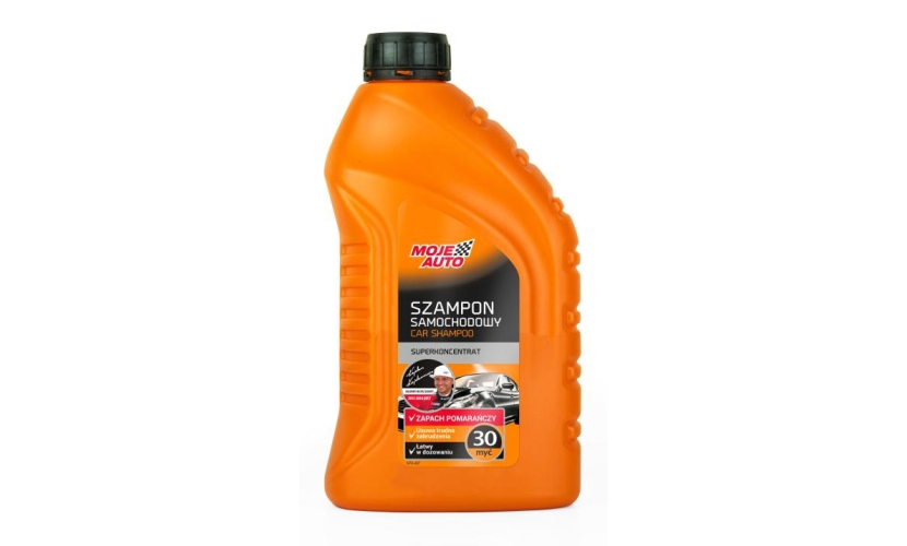 Σαμπουάν καθαρισμού αυτοκινήτου. Αφαιρεί τη σκληρή βρωμιά χωρίς να καταστρέφει το βερνίκι του χρώματος, αφήνοντας πίσω ένα ευχάριστο άρωμα πορτοκάλι. Υπερ-συμπυκνωμένο σκεύασμα, για έως και 30 πλύσεις.
