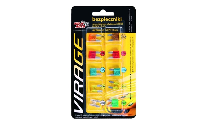 Σετ μαχαιρωτών ασφαλειών αυτοκινήτου της Moje Auto που αποτελείται από 10 ασφάλειες.
