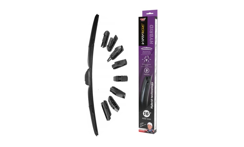 Οι υβριδικοί υαλοκαθαριστήρες Moje Auto Virage συνδυάζουν τα πλεονεκτήματα των επίπεδων λεπίδων με ένα ενσωματωμένο πλαίσιο. Χάρη σε αυτόν τον συνδυασμό, ο υαλοκαθαριστήρας χαρακτηρίζεται από πολύ καλή πίεση της λεπίδας στο γυαλί και ελκυστική αεροδυναμική εμφάνιση. Αυτό σημαίνει άψογη απομάκρυνση του νερού, ακόμη και σε έντονες βροχοπτώσεις. Είναι κατασκευασμένος από ανθεκτικά, υψηλής ποιότητας υλικά.Χάρη στους 9 διαφορετικούς αντάπτορες που συμπεριλαμβάνονται στη συσκευασία, επιτυγχάνει συμβατότητα με τα περισσότερα αυτοκίνητα της αγοράς.
