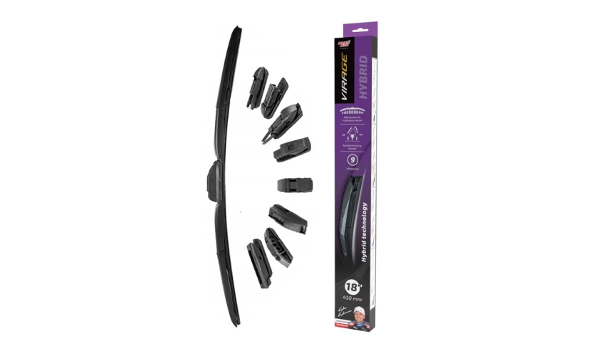 Οι υβριδικοί υαλοκαθαριστήρες Moje Auto Virage συνδυάζουν τα πλεονεκτήματα των επίπεδων λεπίδων με ένα ενσωματωμένο πλαίσιο. Χάρη σε αυτόν τον συνδυασμό, ο υαλοκαθαριστήρας χαρακτηρίζεται από πολύ καλή πίεση της λεπίδας στο γυαλί και ελκυστική αεροδυναμική εμφάνιση. Αυτό σημαίνει άψογη απομάκρυνση του νερού, ακόμη και σε έντονες βροχοπτώσεις. Είναι κατασκευασμένος από ανθεκτικά, υψηλής ποιότητας υλικά.Χάρη στους 9 διαφορετικούς αντάπτορες που συμπεριλαμβάνονται στη συσκευασία, επιτυγχάνει συμβατότητα με τα περισσότερα αυτοκίνητα της αγοράς.