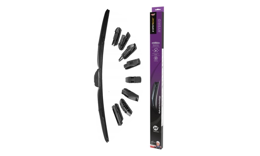 Οι υβριδικοί υαλοκαθαριστήρες Moje Auto Virage συνδυάζουν τα πλεονεκτήματα των επίπεδων λεπίδων με ένα ενσωματωμένο πλαίσιο. Χάρη σε αυτόν τον συνδυασμό, ο υαλοκαθαριστήρας χαρακτηρίζεται από πολύ καλή πίεση της λεπίδας στο γυαλί και ελκυστική αεροδυναμική εμφάνιση. Αυτό σημαίνει άψογη απομάκρυνση του νερού, ακόμη και σε έντονες βροχοπτώσεις. Είναι κατασκευασμένος από ανθεκτικά, υψηλής ποιότητας υλικά.Χάρη στους 9 διαφορετικούς αντάπτορες που συμπεριλαμβάνονται στη συσκευασία, επιτυγχάνει συμβατότητα με τα περισσότερα αυτοκίνητα της αγοράς.