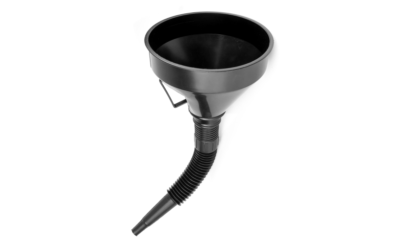 Χωνί με βιδωτό σπιράλ από την Moje Auto, κατάλληλο για χρήση με υγρά καύσιμα και λάδια οχημάτων. Στο εσωτερικό του ενσωματώνει μεταλλικό φίλτρο για την ασφαλή ροή των υγρών.
