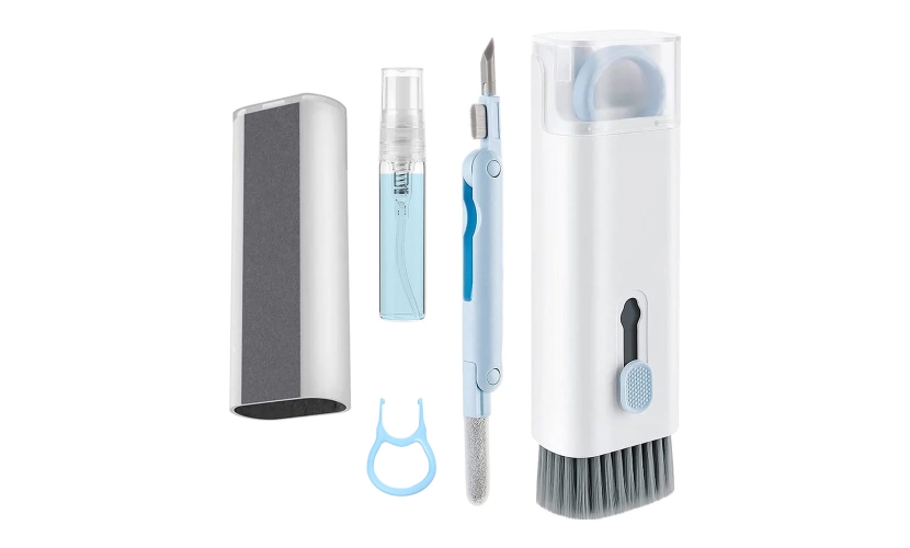 Κιτ καθαρισμού ηλεκτρονικών συσκευών 7 σε 1, ιδανικό για τον καθαρισμό πληκτρολογίων, ακουστικών, οθονών κλπ.Το κιτ αποτελείται από πτυσσόμενη βούρτσα, ενσωματωμένη επιφάνεια καθαρισμού οθόνης, υγρό σπρέι καθαρισμού οθόνης, 3 σε 1 εργαλείο καθαρισμού ακουστικών και εξολκέα πλήκτρων πληκτρολογίου.