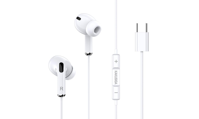 Τα ακουστικά της KAKUSIGA απογειώνουν την μουσική εμπειρία, προσφέροντας εξαιρετικά καθαρό και πλούσιο ήχο, ο οποίος αναδεικνύει την παραμικρή λεπτομέρεια του ακούσματος, ενώ, με το ενσωματωμένο μικρόφωνο υψηλής απόδοσης που διαθέτουν, σου επιτρέπουν να πραγματοποιήσεις τηλεφωνικές κλήσεις.Διαθέτουν μεγάλο καλώδιο μήκους 1.2m και η σύνδεσή τους πραγματοποιείται μέσω υποδοχής USB-C.