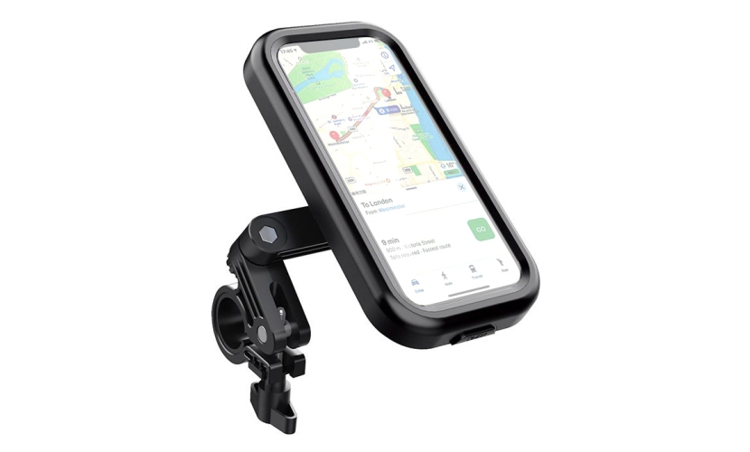 Βάση για smartphone της KAKUSIGA με στήριξη σε τιμόνι ποδηλάτου, ηλεκτρικού πατινιού ή μηχανής. Το smartphone εφαρμόζει στο εσωτερικό της βάσης με μαγνητική συγκράτηση ενώ διαθέτει και διάφανο TPU πλαίσιο το οποίο είναι touch friendly για εύκολη χρήση της οθόνης αφής.Είναι κατασκευασμένη από ανθεκτικό πλαστικό υλικό με IPX6 επίπεδο αδιαβροχοποίησης.