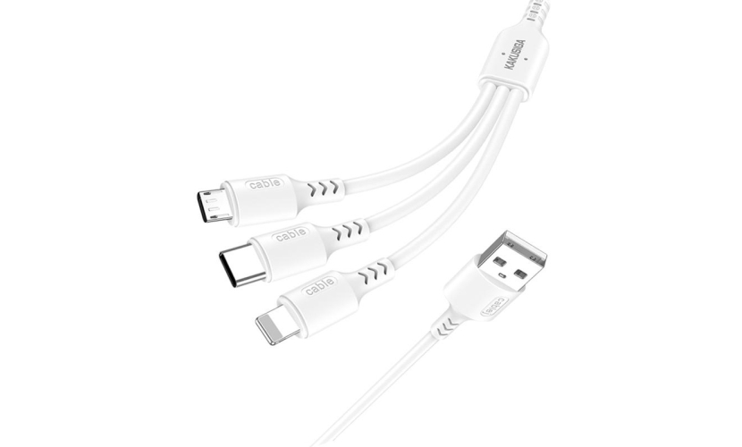 Καλώδιο φόρτισης και μεταφοράς δεδομένων USB σε USB-C, Lightning και Micro USB της KAKUSIGA.Κατασκευάζεται από υψηλής ποιότητας υλικά, σύμφωνα με τις υψηλότερες τεχνικές προδιαγραφές, προσφέροντας αξιόπιστη λειτουργία και αντοχή στον χρόνο.
