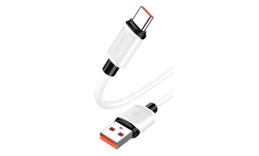 Τεχνικά χαρακτηριστικά-βύσμα 1: USB-C αρσενικό-βύσμα 2: USB αρσενικό-λειτουργιά: φόρτιση & μεταφορά αρχείων-έξοδος: 5A (max)-ρυθμός μεταφοράς δεδομένων: 480Mbps-μήκος: 1m-υλικό καλωδίου: σιλικόνη-χρώμα: λευκό