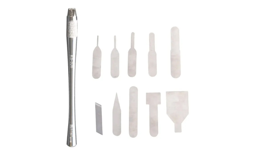Εργαλείο ανοίγματος από την Kaisi, κατάλληλο για εργασίες όπως αφαίρεση CPU και chip σε επισκευές smartphone.Το σετ περιέχει 10 διαφορετικές κεφαλές, ώστε να έχετε το ιδανικό για κάθε περίσταση.