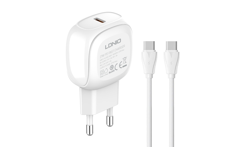 Υψηλής απόδοσης USB φορτιστής τοίχου της LDNIO, κατασκευασμένος από ανθεκτικό υλικό και συμβατός με όλες τις συσκευές που φορτίζουν μέσω USB θύρας.Διαθέτει 1 θύρα εξόδου USB-C που υποστηρίζει φόρτιση με απόδοση έως 27W.Στη συσκευασία συμπεριλαμβάνεται καλώδιο φόρτισης USB-C σε USB-C, μήκους 1 μέτρου.