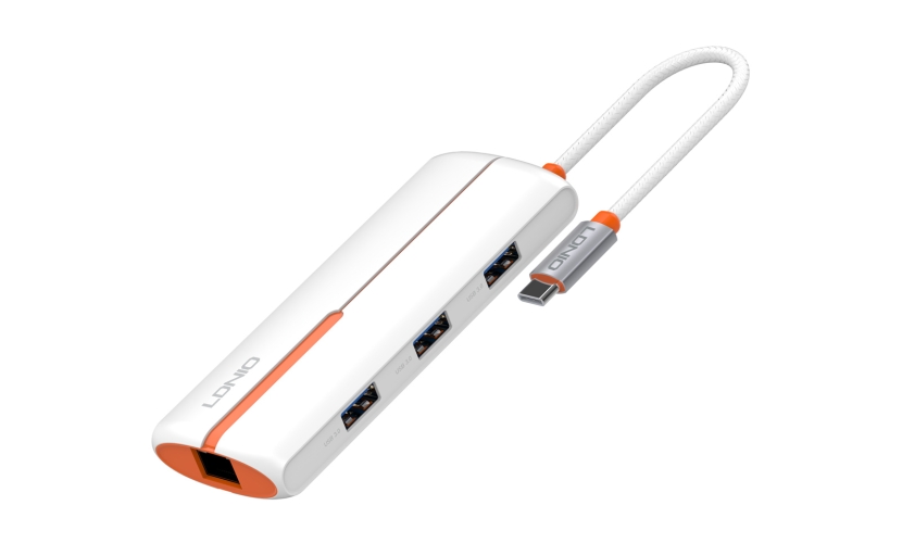 LDNIO USB hub DS-26U με θύρα δικτύου, 6 θυρών, USB-C σύνδεση, 100W PD, λευκό