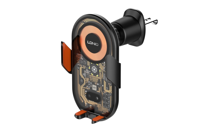 Ασύρματος φορτιστής και βάση αυτοκινήτου με στήριξη σε οριζόντιους ή κάθετους αεραγωγούς του αυτοκινήτου.Συγκρατεί ιδιαίτερα σταθερά το smartphone ενώ παράλληλα το φορτίζει ασύρματα με απόδοση έως 15W.Η δέσμευση και αποδέσμευση της συσκευής γίνεται αυτόματα με αισθητήρα.Το σύστημα τοποθέτησης της βάσης διαθέτει διπλό άγκιστρο για απόλυτη σταθερότητα στους αεραγωγούς ενώ τα πτερύγια που ασφαλίζεται το smartphone είναι επενδυμένα από αντιολισθητικό, μαλακό υλικό.Για την λειτουργία του απαιτείται τροφοδοσία μέσω καλωδίου USB (συμπεριλαμβάνεται).