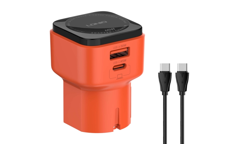 Φορτιστής τοίχου από την LDNIO, κατάλληλος για χρήση με τύπους πριζών EU, UK, US και AU. Η εναλλαγή της πρίζας γίνεται εύκολα με συρόμενο κουμπί. Εξοπλίζεται με USB και USB-C θύρες εξόδου, για την φόρτιση συσκευών, με μέγιστη απόδοση 45W.Είναι ιδανικός για όσους ταξιδεύουν τακτικά στο εξωτερικό, καθώς μπορεί να χρησιμοποιηθεί σε πολλές διαφορετικές χώρες.