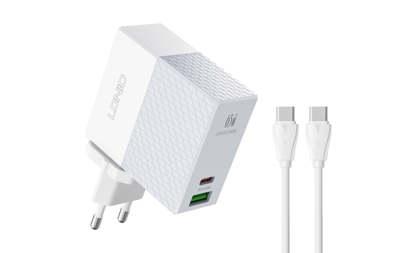 Υψηλής απόδοσης USB φορτιστής τοίχου της LDNIO, κατασκευασμένος από ανθεκτικό υλικό και συμβατός με όλες τις συσκευές που φορτίζουν μέσω USB θύρας.Διαθέτει θύρες εξόδου USB και USB-C που υποστηρίζουν φόρτιση με απόδοση έως 65W.Στη συσκευασία συμπεριλαμβάνεται καλώδιο φόρτισης USB-C σε USB-C, μήκους 1 μέτρου.