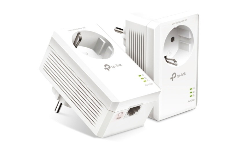 Starter powerline kit της TP-LINK με 2x AV1000 Gigabit passthrough powerline αντάπτορες TL-PA7017P και 2x καλώδια Ethernet.