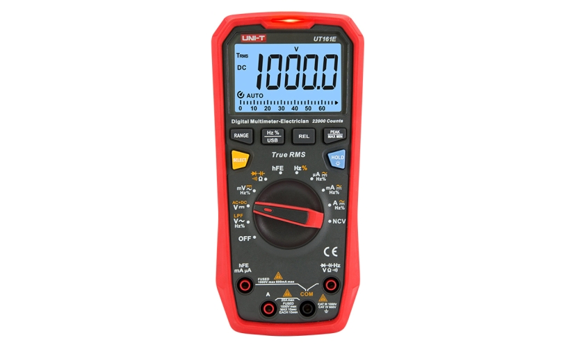 Το UT161E είναι ένα αξιόπιστο True RMS ψηφιακό πολύμετρο με μέγιστο αριθμό μέτρησης οθόνης 22,000 ψηφίων. Μπορεί να μετρήσει έως 1000V AC/DC και διαθέτει οπτικοακουστικό συναγερμό. Μπορεί να σας παρέχει προειδοποίηση ιδιαίτερα όταν μετράτε υψηλή τάση/ρεύμα και θερμοκρασία.