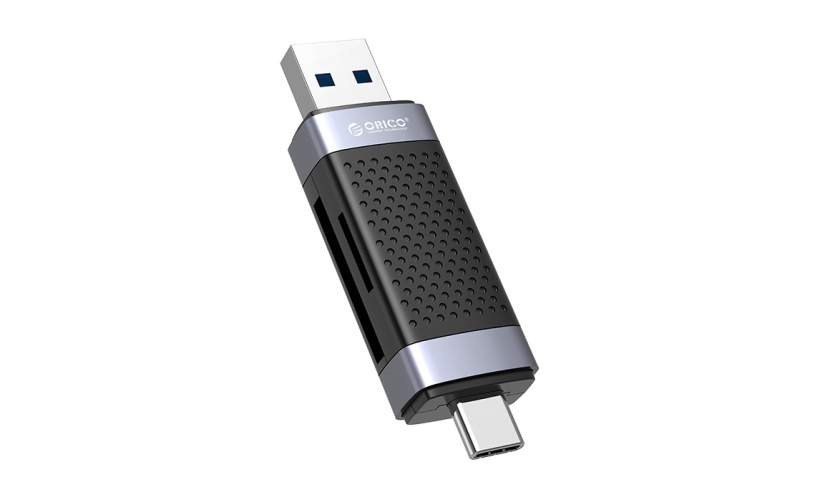 Card reader σε μέγεθος USB flash από την Orico, με 2 υποδοχές στις οποίες μπορείτε να τοποθετήσετε μια SD και μια Micro SD κάρτα μνήμης.Συνδέεται απευθείας σε desktop ή laptop μέσω θύρας USB και σε smartphone ή tablet μέσω θύρας USB-C.Είναι τεχνολογίας USB 3.0, προσφέροντας υψηλές ταχύτητες ανάγνωσης και εγγραφής δεδομένων.