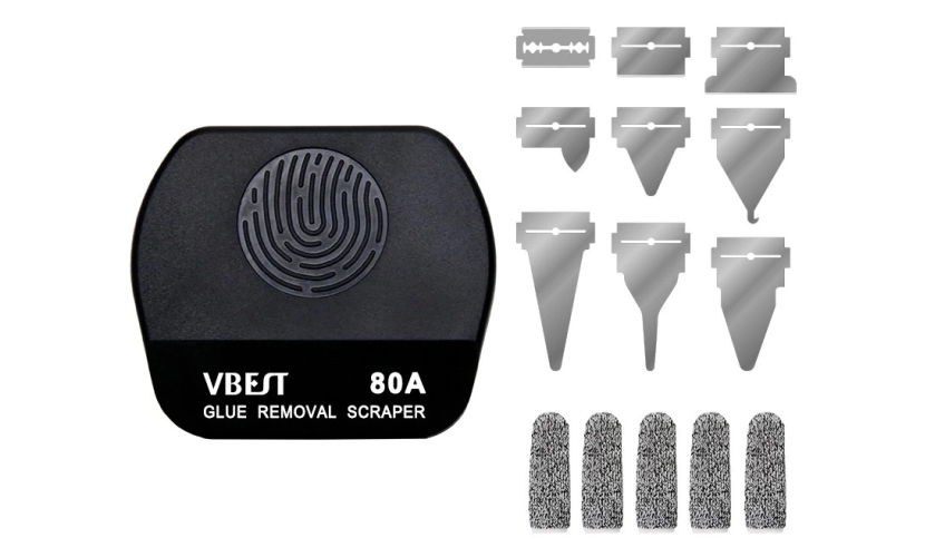 BEST εργαλείο αφαίρεσης κόλλας VBST-80B με 9x λεπίδες & 5x finger sleeves, για επισκευές κινητών