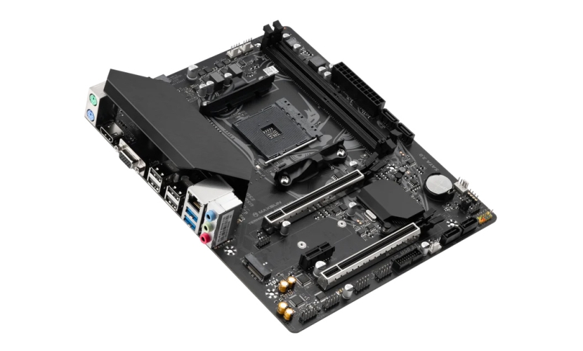 Τεχνικά χαρακτηριστικά-Chipset: AMD B550 Chipset-CPU (Max Support): AMD Socket AM4, support for: AMD Ryzen 5000 G-Series Processors/ AMD Ryzen 5000 Series Processors/ AMD Ryzen 4000 G-Series Processors/ AMD Ryzen 3000 Series Processors-Memory: 2x DDR4, Maximum Memory Capacity 64GB, Memory Support DDR4 3800 (O.C.) / 3733 (O.C.) / 3666 (O.C.) / 3600 (O.C.) / 3200 / 3000 / 2933 / 2666 / 2400 / 2133 MHz, Supports AMD A-XMP OC, Supports Dual-Controller Dual-Channel mode-Onboard graphics: 1x VGA, supports maximum resolution of 2048x1536 50Hz, 2048x1280 60Hz, 1920x1200 60Hz / 1x HDMI port, supports up to 4K 30Hz-Expansion slot: 1x PCIe 4.0 x16 slot, 1x PCIe 3.0 x4 slot, 1x PCIe 3.0 x1 slot-Storage: M.2 slot (Key M), type 2242/2280 (supports PCIe 4.0 x4 mode), 4x SATA 6Gb/s ports-Raid: Supports RAID 0, RAID 1, RAID 5 and RAID 10 for SATA storage devices-USB: Front USB: 2x USB 3.2 Gen1 Type A, 4x USB 2.0, Rear USB: 2x USB 3.2 Gen1 Type A, 4x USB 2.0-LAN: Realtek RTL8125BG 2.5G LAN-Audio: Realtek ALC897 Codec, 5.1-Channel High Definition Audio-LED feature: Without Debug LED-Operating system: Support for Windows 11 64-bit, Windows 10 64-bit-Form factor: M-ATX, 245mm x 200mm-Internal I/O:1x 24-pin Power Connector (ATX_PWR)1x 8-pin Power Connector (CPU_PWR)1x CPU Fan2x System Fan1x PS/2 interface1x M.2 slots (Key-M)4x SATA 6Gb/s ports1x 4-Pin SPEAKER1x Front Audio1x COM_A Port1x 9-Pin DEBUG_CON1x CLR CMOS