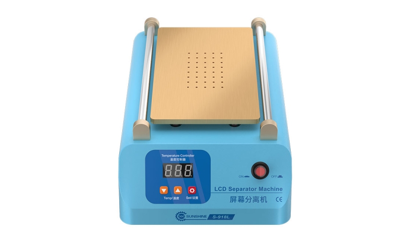 Μηχάνημα διαχωρισμού LCD οθόνης smartphone από την Sunshine. Διαθέτει θερμοστάτη για την ρύθμιση της θερμοκρασίας και οθόνη για την παρακολούθηση της σε πραγματικό χρόνο. Υιοθετεί την τεχνική του κενού αέρα, μέσω της αντλίας που έχει, κάτι το οποίο κάνει πιο εύκολη την χρήση του καθότι δεν χρησιμοποιεί σφιγκτήρες για την σταθεροποίηση της οθόνης και την αφαίρεση της.Για επαγγελματίες και όχι μόνο, που ειδικεύονται στις επισκευές smartphone, η Sunshine προσφέρει μεγάλη ποικιλία ποιοτικών εργαλείων που μπορεί να καλύψει μεγάλο εύρος εργασιών.