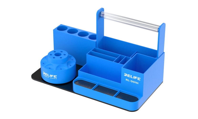 Αυτή η βάση της Relife προσφέρει χώρο για την οργάνωση εργαλείων που χρησιμοποιούνται σε εργασίες επισκευής κινητών.Ενσωματώνει περιστρεφόμενη μαγνητική βάση για την τοποθέτηση κατσαβιδιών ενώ στο κάτω μέρος της διαθέτει επένδυση από αντιολισθητικό υλικό.