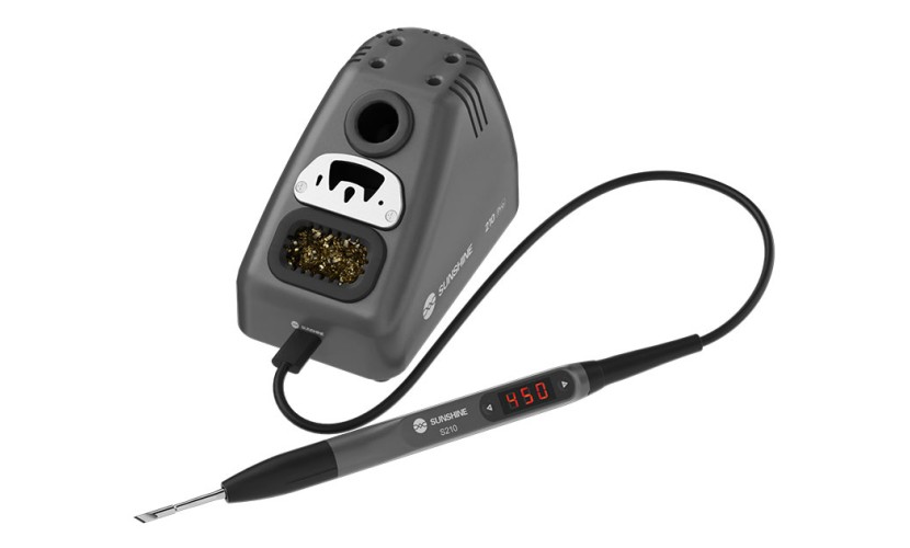 Σταθμός κόλλησης της Sunshine με υψηλή ισχύ 110W. Ενσωματώνει βάση για κολλητήρι και για συρμάτινο σφουγγάρι, αλλά και αποθηκευτικό χώρο για τοποθέτηση των μυτών κολλητηρίου. Επιπλέον, διαθέτει εύκολο σύστημα αλλαγής μύτης, που επιτρέπει την αλλαγή της ακόμη και όταν η μύτη είναι ζεστή.Μαζί με τον σταθμό, συμπεριλαμβάνεται κολλητήρι που αναπτύσσει θερμοκρασίες από 100 °C έως 450 °C και συνδέεται μέσω καλωδίου USB-C.