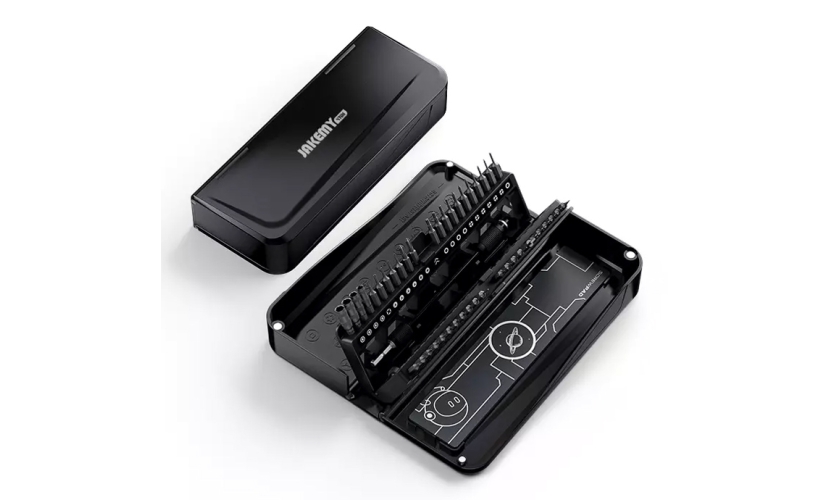 Σετ κατσαβιδιών της Jakemy το οποίο αποτελείται από κατσαβίδι, προέκταση, μαγνητικό φύλλο και 30 διαφορετικές μύτες κατσαβιδιού.Το κατσαβίδι διαθέτει κυκλικό περιστρεφόμενο σύνδεσμο και στην επιφάνεια του είναι χαραγμένος χάρακας 0.7 cm.Όλα τα περιεχόμενα του σετ είναι τοποθετημένα μέσα σε πλαστική κασετίνα, για την εύκολη τακτοποίηση και μεταφορά τους.