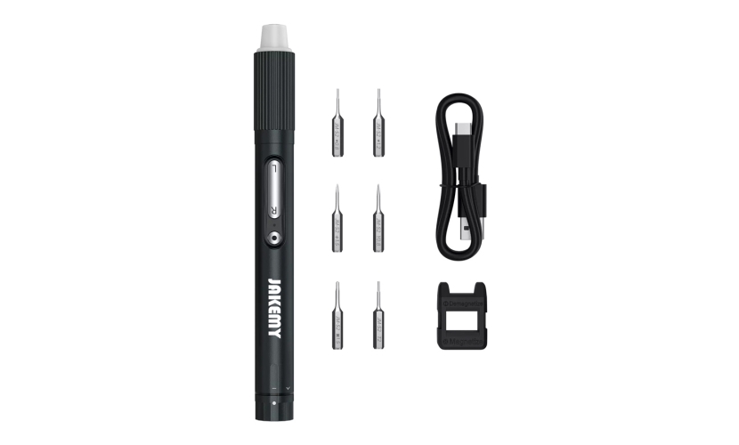 Ηλεκτρικό κατσαβίδι από την Jakemy με ισχυρό μαγνητικό κινητήρα και 3 λειτουργίες.Η κεφαλή μπορεί να περιστρέφεται δεξιόστροφα ή αριστερόστροφα και εξοπλίζεται με βολικό LED φακό για άνετη εργασία ακόμη και στο σκοτάδι.Τροφοδοτείται από επαναφορτιζόμενη μπαταρία, η οποία φορτίζει μέσω καλωδίου USB.Στη συσκευασία συμπεριλαμβάνονται 6 μύτες κατσαβιδιού, μαγνητιστής/απομαγνητιστής και καλώδιο φόρτισης.