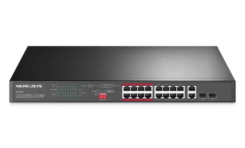 Το rackmount switch της Mercusys σας επιτρέπει να επεκτείνετε το ενσύρματο δίκτυο σας με 16x 10/100Mbps PoE+ θύρες και 2x Gigabit θύρες.Είναι ιδανικό για μικρές και μεγάλες επιχειρήσεις που διαθέτουν συστήματα παρακολούθησης.