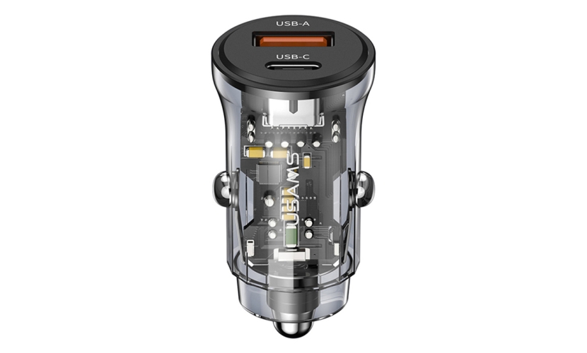 Υψηλής απόδοσης USB φορτιστής αυτοκινήτου της Usams, κατασκευασμένος από ανθεκτικό υλικό και συμβατός με όλες τις συσκευές που φορτίζουν μέσω USB θύρας.Είναι μικρός σε μέγεθος και το μεγαλύτερο μέρος του χωνεύει στην πρίζα του αυτοκινήτου. Διαθέτει δυο θύρες εξόδου, μια USB και μια USB-C, για ταυτόχρονη φόρτιση 2 συσκευών, με μέγιστη απόδοση έως 30W.