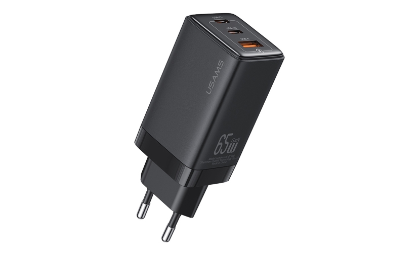Υψηλής απόδοσης φορτιστής τοίχου της Usams, κατασκευασμένος από ανθεκτικό υλικό και συμβατός με συσκευές που φορτίζουν μέσω θύρας USB.Διαθέτει 1x USB και 2x USB-C θύρες εξόδου που υποστηρίζουν φόρτιση με απόδοση έως 65W.