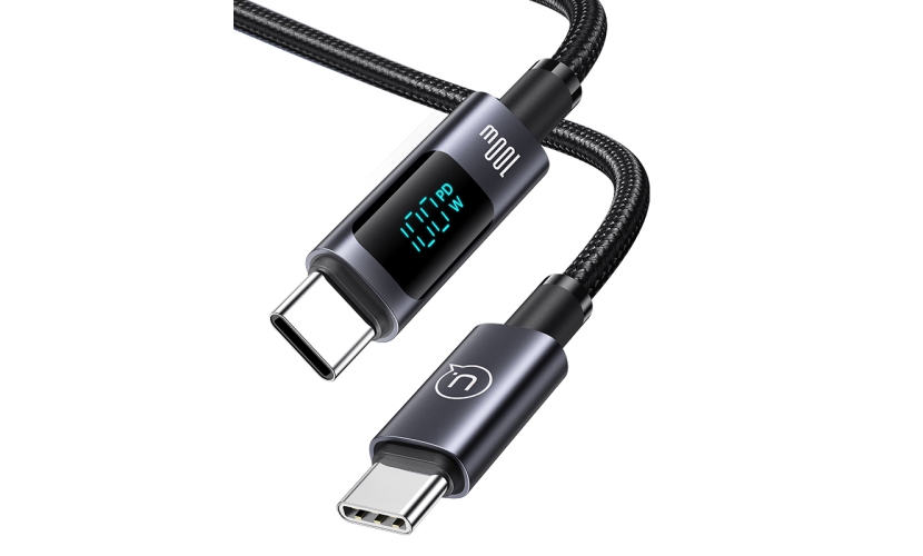 Σημεία ενδιαφέροντος προϊόντος-φόρτιση με απόδοση έως 100W-υποστήριξη μεταφοράς δεδομένων-με οθόνη προβολής απόδοσης φόρτισης-μεταλλικά βύσματα & braided καλώδιο για μεγαλύτερη αντοχή-με πρακτικό δεματικό τύπου velcro για εύκολη αποθήκευση