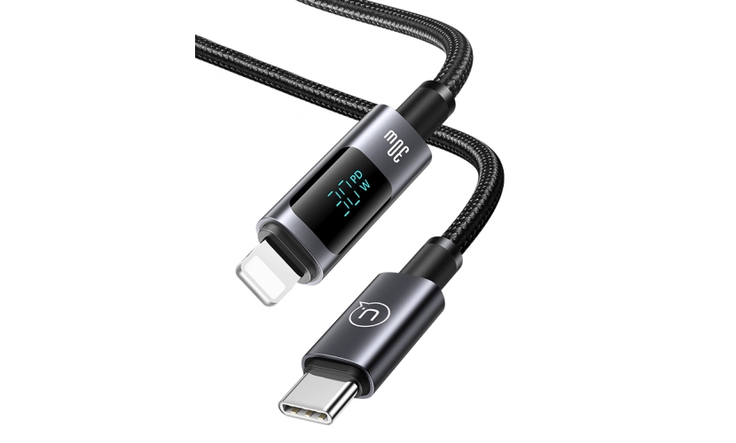 Τεχνικά χαρακτηριστικά-Βύσμα 1: Lightning αρσενικό-Βύσμα 2: USB-C αρσενικό-Έξοδος: 30W (Max)-Ρυθμός μεταφοράς δεδομένων: 480Mbps-Μήκος καλωδίου: 1.2m-Υλικό: Aluminum alloy, TPE, Braided cable-Χρώμα: Μαύρο