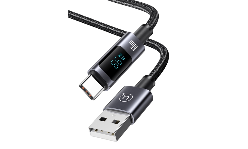 Σημεία ενδιαφέροντος προϊόντος-φόρτιση με απόδοση έως 66W-υποστήριξη μεταφοράς δεδομένων-με οθόνη προβολής απόδοσης φόρτισης-μεταλλικά βύσματα & braided καλώδιο για μεγαλύτερη αντοχή-με πρακτικό δεματικό τύπου velcro για εύκολη αποθήκευση