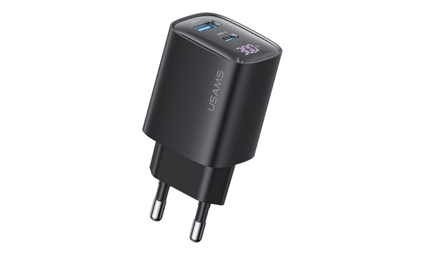 USAMS φορτιστής τοίχου US-CC229, USB & USB-C, 30W, GaN, μαύρος