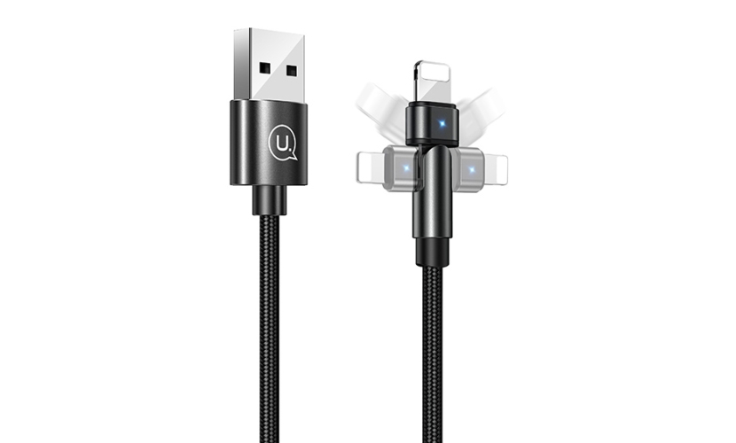 Καλώδιο φόρτισης Lightning σε USB της Usams, με περιστρεφόμενο βύσμα 180°.Είναι κατασκευασμένο από υψηλής ποιότητας υλικά, με κομψό design και υποστηρίζει φόρτιση με απόδοση έως 2.1A.