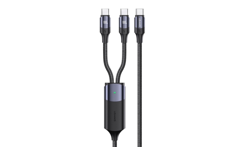 Καλώδιο φόρτισης και μεταφοράς δεδομένων USB-C σε 2x USB-C της Usams, με απόδοση φόρτισης έως 100W.Είναι κατασκευασμένο από υψηλής ποιότητας υλικά, με κομψό design και συνοδεύεται από δεματικό αυτοκόλλητο τύπου velcro για εύκολη αποθήκευση.