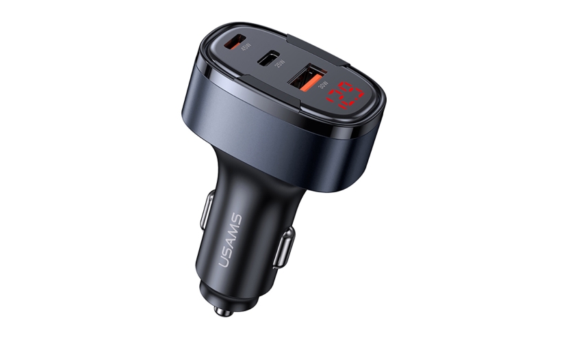 Υψηλής απόδοσης φορτιστής αυτοκινήτου της Usams, κατασκευασμένος από ανθεκτικό υλικό και συμβατός με συσκευές που φορτίζουν μέσω θύρας USB & Lightning.Διαθέτει 1x USB, 1x USB-C και 1x Lightning θύρες εξόδου που υποστηρίζουν φόρτιση με μέγιστη συνολική απόδοση 100W.