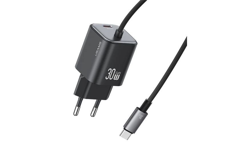 USAMS φορτιστής τοίχου CC264 με καλώδιο, USB-C, 30W, GaN, μαύρος
