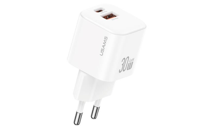 USAMS φορτιστής τοίχου CC263, USB & USB-C, 30W, GaN, λευκός