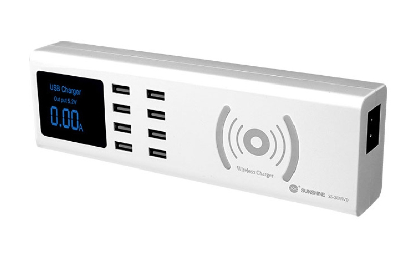 SUNSHINE σταθμός φόρτισης SS-309WD, 8x USB 8A, wireless 10W, λευκός