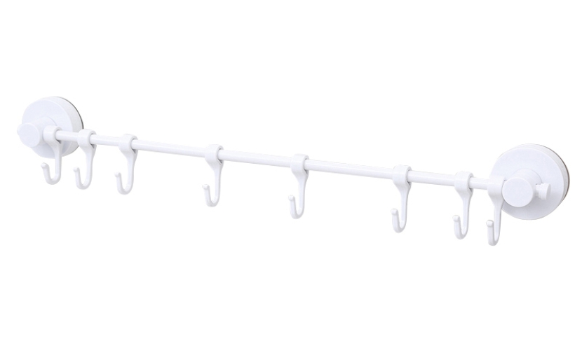 Κρεμάστρα της Ecoco, ιδανική για την κουζίνα ή το μπάνιο. Εξοπλίζεται με 8 γάντζους για την αποθήκευση μικροαντικειμένων, διαφόρων σκευών και πετσετών με ανώτατο συνολικό βάρος αντοχής 5kg. Τοποθετείται εύκολα σε οποιαδήποτε επίπεδη επιφάνεια με αυτοκόλλητα κλιπ.