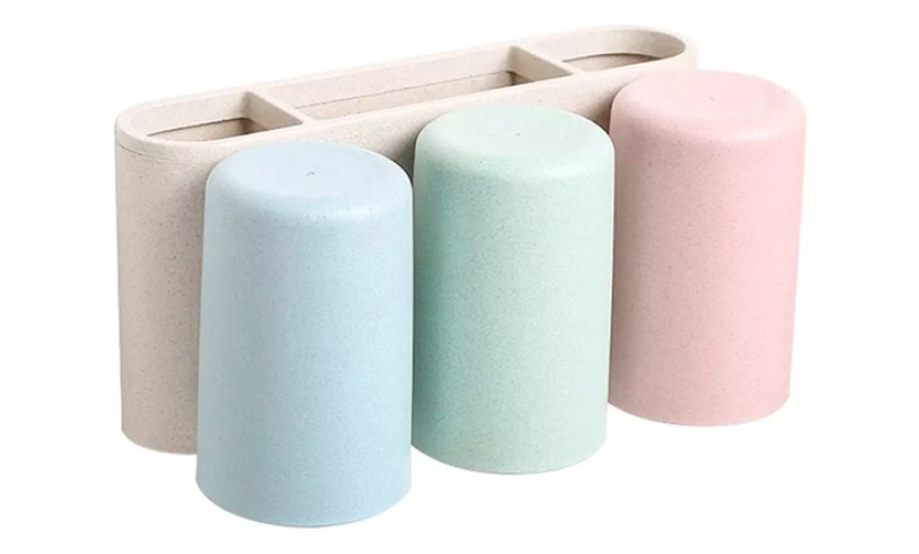 Βάση οδοντόβουρτσας με 3 ποτήρια της Ecoco και κομψή εμφάνιση, κατασκευασμένη από Eco-friendly υλικά. Τοποθετείται εύκολα στον τοίχο με αυτοκόλλητα τα οποία αποσπώνται από την βάση, διευκολύνοντας τον καθαρισμό της. Διαθέτει 3 ποτήρια και 3 θήκες όπου μπορούν να τοποθετηθούν οδοντόβουρτσες, οδοντόκρεμες ή αλλά αντικείμενα υγιεινής.