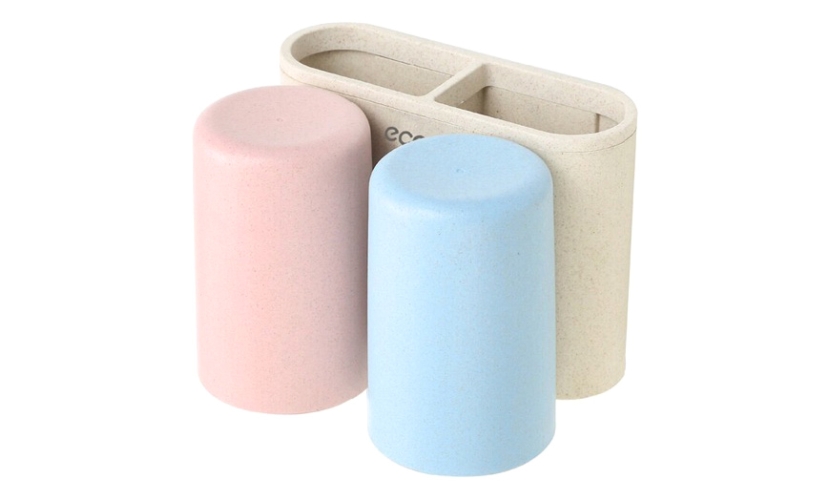 Βάση οδοντόβουρτσας με 2 ποτήρια της Ecoco και κομψή εμφάνιση, κατασκευασμένη από Eco-friendly υλικά. Τοποθετείται εύκολα στον τοίχο με αυτοκόλλητα τα οποία αποσπώνται από την βάση, διευκολύνοντας τον καθαρισμό της. Διαθέτει 2 ποτήρια και 2 θήκες όπου μπορούν να τοποθετηθούν οδοντόβουρτσες, οδοντόκρεμες ή αλλά αντικείμενα υγιεινής.
