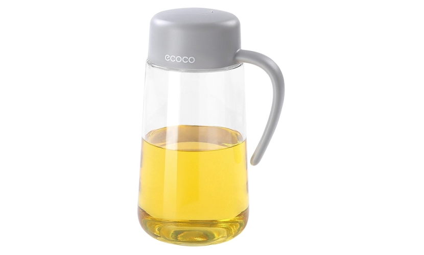 Γυάλινο δοχείο λαδιού-ξιδιού της Ecoco με μεγάλη χωρητικότητα 600ml. Διαθέτει ειδικά σχεδιασμένο καπάκι με αυτόματο άνοιγμα και εργονομικό σχεδιασμό με άνετη λαβή και αντιολισθητικό υλικό σιλικόνης στη βάση.