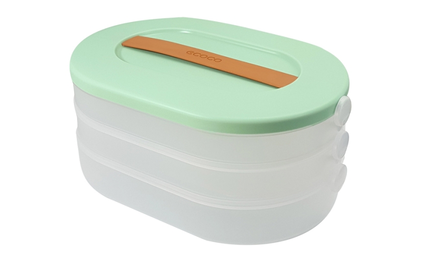 Δοχείο αποθήκευσης τροφίμων της Ecoco με 3 ανεξάρτητα επίπεδα. Είναι κατασκευασμένο από ανθεκτικό υλικό και διαθέτει χερούλι στο καπάκι για να μπορεί να μεταφέρεται εύκολα παντού.