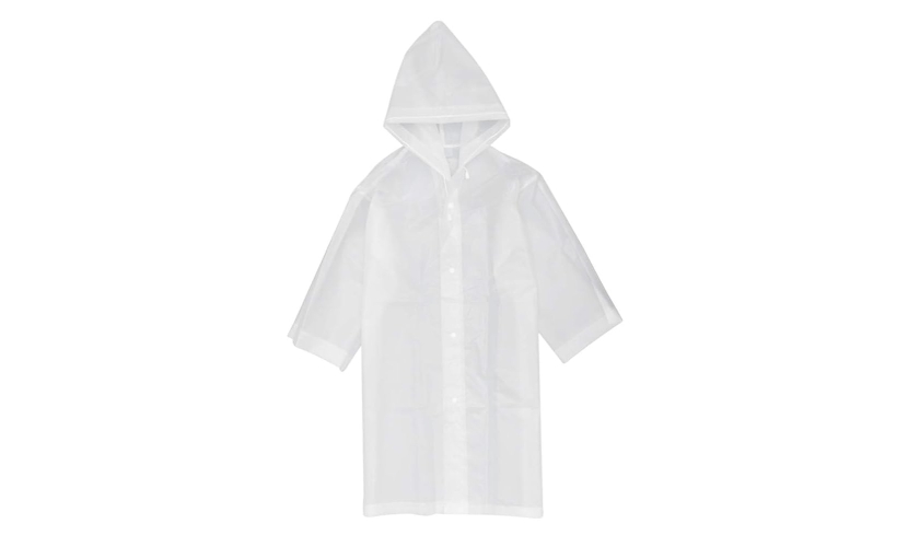 Χαρακτηριστικά-υλικό: EVA-διαστάσεις καμπαρντίνας: μήκος: 84cm, πλάτος: 52cm-μήκος κουκούλας: 27cm-μήκος μανικιών: 41cm-εφαρμόσιμο εύρος ύψους: 120-160cm-χρώμα: λευκή