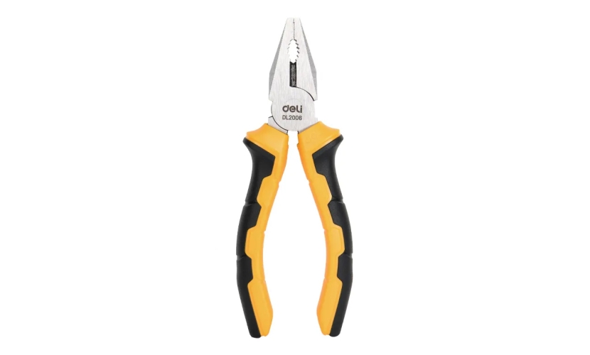 Πένσα της Deli για την κοπή και τον χειρισμό διαφόρων τύπων συρμάτων.Είναι κατασκευασμένη από χάλυβα άνθρακα για υψηλή αντοχή και διαθέτει αντιολισθητικές λαβές για άνετο κράτημα.
