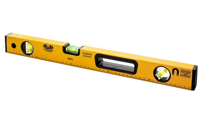DELI αλφάδι DL290500 με 3 μάτια & χάρακα, μαγνητικό, 50cm
