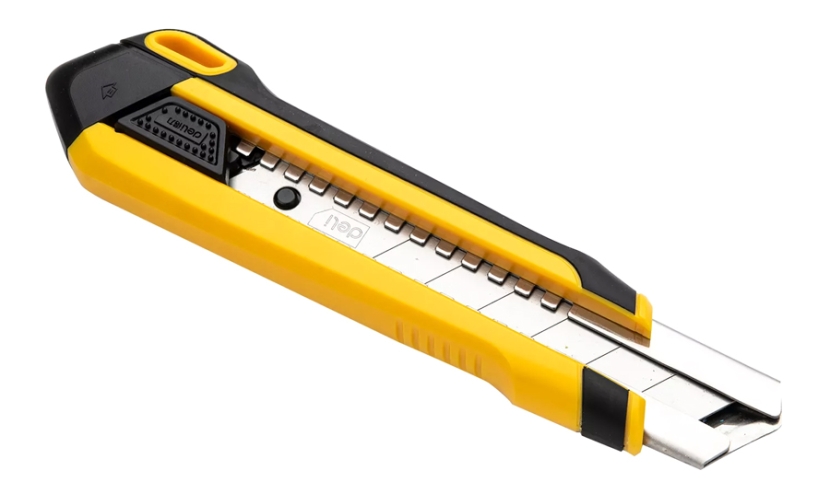 DELI πλαστικό κοπίδι με ασφάλεια DL025, 25mm, κίτρινο